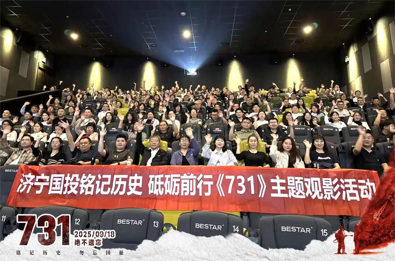 9月28日下午,濟寧國投“銘記歷史 砥礪前行”主題觀影活動舉行,干部職工集中觀看影片《731》。影片以平民視角揭露侵華日軍細菌戰暴行,展現絕境中中國人的不屈反抗。觀影結束后,觀影職工紛紛感慨:“和平來之不易,我們更要以實干守護家國安寧。”此次活動覆蓋濟寧國投所有權屬企業,公司黨員、退役軍人及職工代表共200余人參加,生動的歷史教育,進一步強化了干部職工的使命感與責任感。