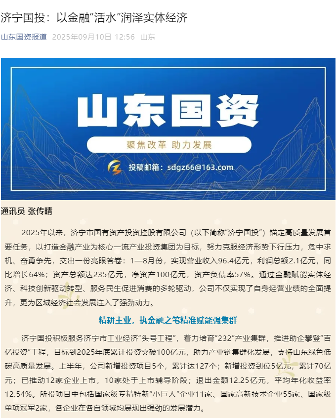 原鏈接:濟(jì)寧國投:以金融“活水”潤澤實體經(jīng)濟(jì)