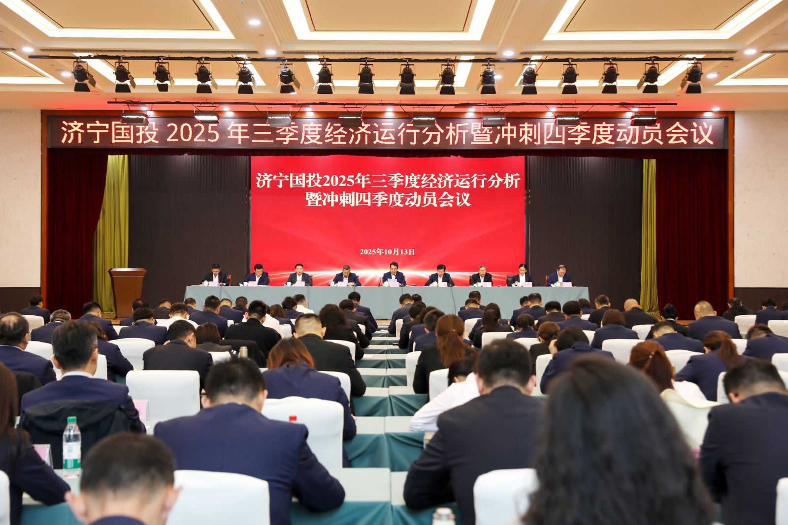 10月13日,濟寧國投召開2025年三季度經濟運行暨沖刺四季度動員會議,全面總結前三季度經濟運行情況,安排部署四季度重點工作,動員公司上下,進一步堅定信心、咬定目標、乘勢而上,以決戰決勝的姿態沖刺四季度,確保圓滿完成全年各項任務目標。濟寧國投黨委書記、董事長虢洪增出席并講話,黨委副書記、總經理賈廣東主持會議。
